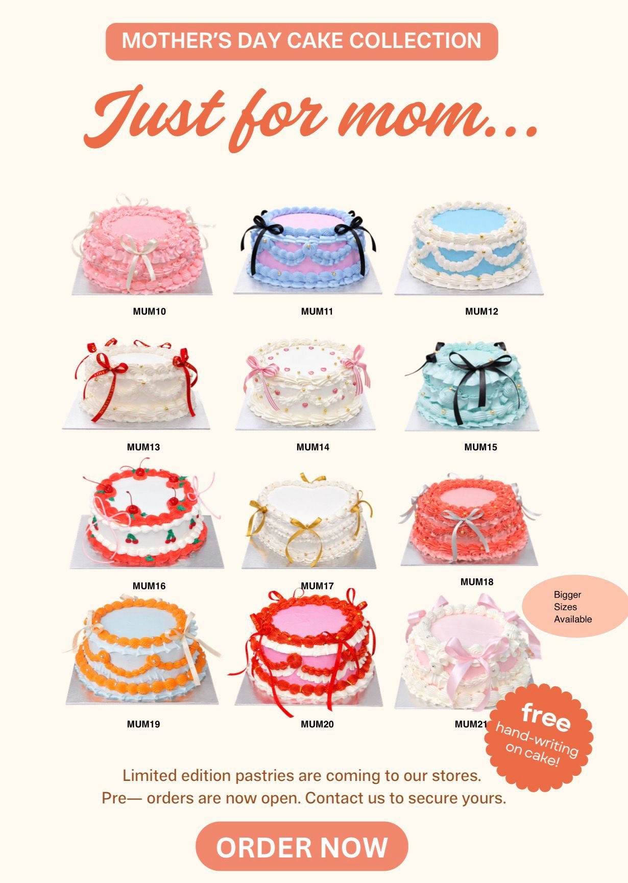 – Square 22cm (8.7”) – $110 – serves up to 16
